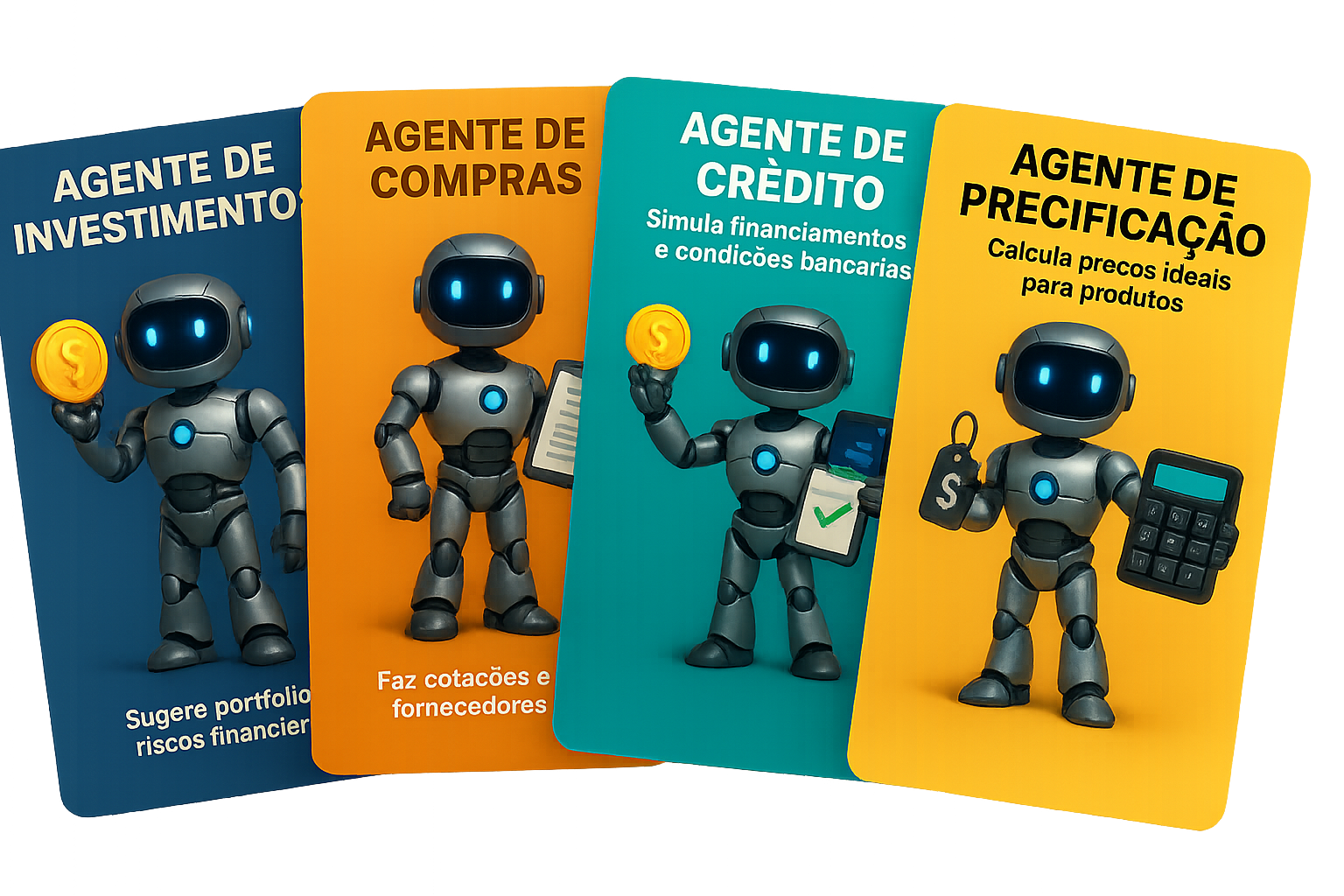 Uma coleção exclusiva de agentes inteligentes, prontos para turbinar suas ideias, automatizar tarefas e acelerar resultados em negócios, marketing, finanças, tecnologia e muito mais. Com apenas um clique, você acessa o poder de 55 especialistas digitais trabalhando ao seu lado.